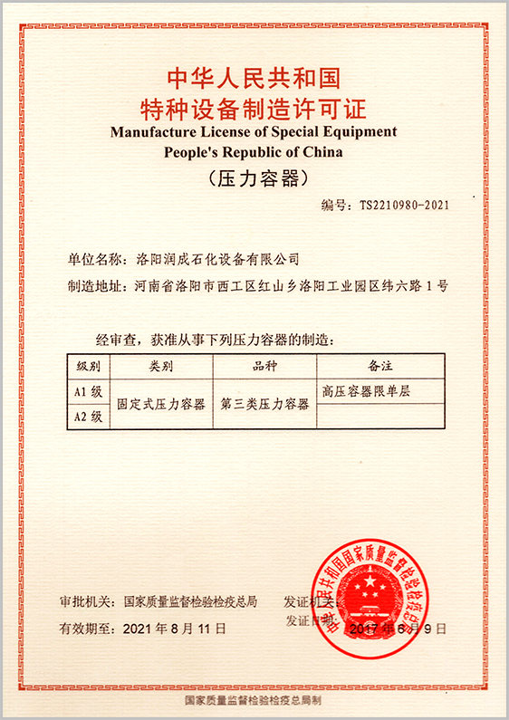 • ? A1、A2級壓力容器制造許可證