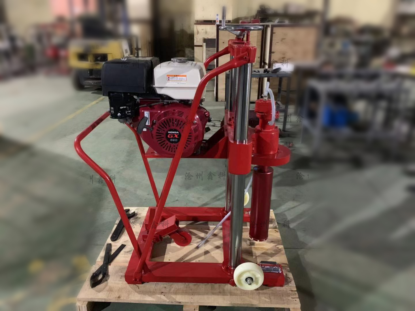 該機為HZ系列金剛石工程鉆機之一,利用高速切割技術,與薄壁金剛石鉆頭配套,采用汽油發(fā)動機為動力(本田或雅馬哈)起動快捷,運轉可靠,適用于無電力場所和較大口徑的工程鉆孔。廣泛應用于工程建筑、市政工程、設備安裝工程和建筑質量檢查等領域。