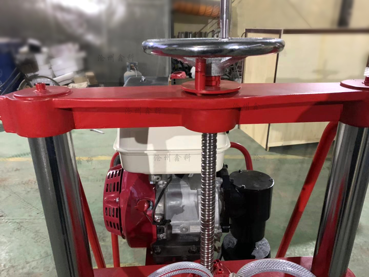 5、開孔:以上作業(yè)做好后,即可開孔作業(yè),裝上鉆頭,起動汽油機(詳情見汽油機用戶手冊)把進水管放入水桶內,水桶要提到高出水泵位置,然后手捏氣襄把水吸入水泵,水泵上水后把水桶放在地面即可。油門調至z大,開始輕搖給進手柄,使鉆頭緩慢接觸地面。開孔要訣:先給水后鉆進,給進速度要慢,鉆壓要小。嚴禁無水作業(yè),以免燒壞鉆頭和水封。